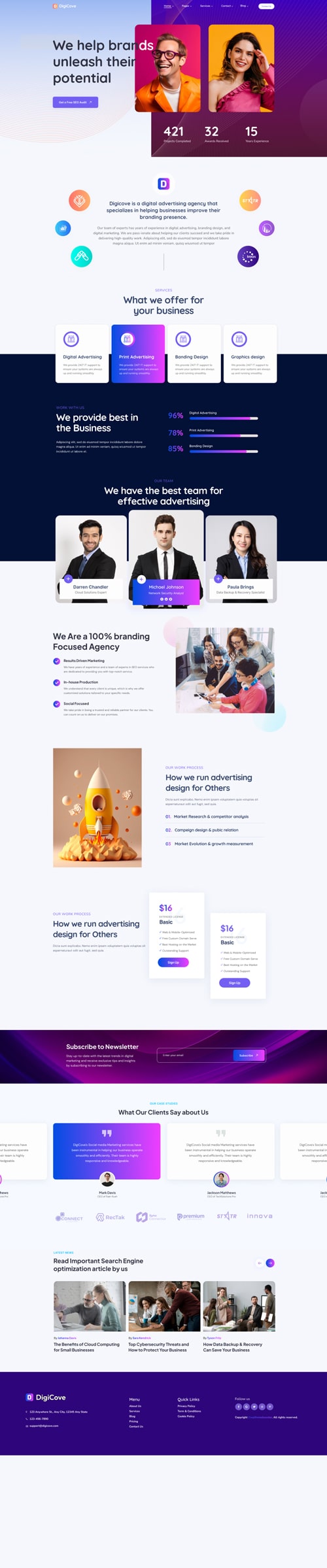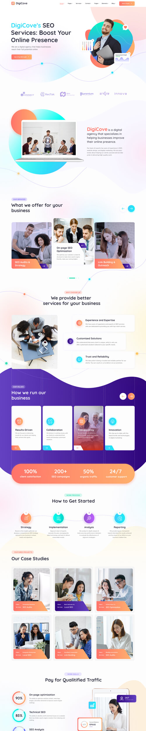 Our team of experts has years of experience in SEO, website design, and digital marketing. We are passionate about helping our clients succeed and we take pride in delivering high-quality work.